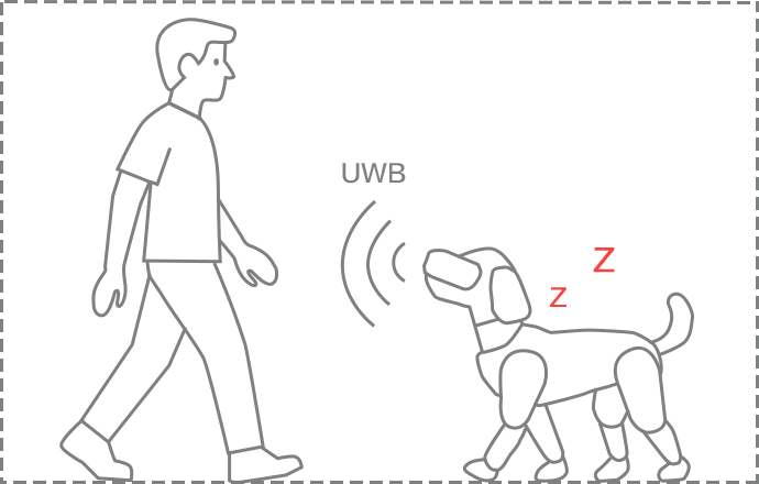 可復用為UWB雷達,當人靠近時自動喚醒機器人