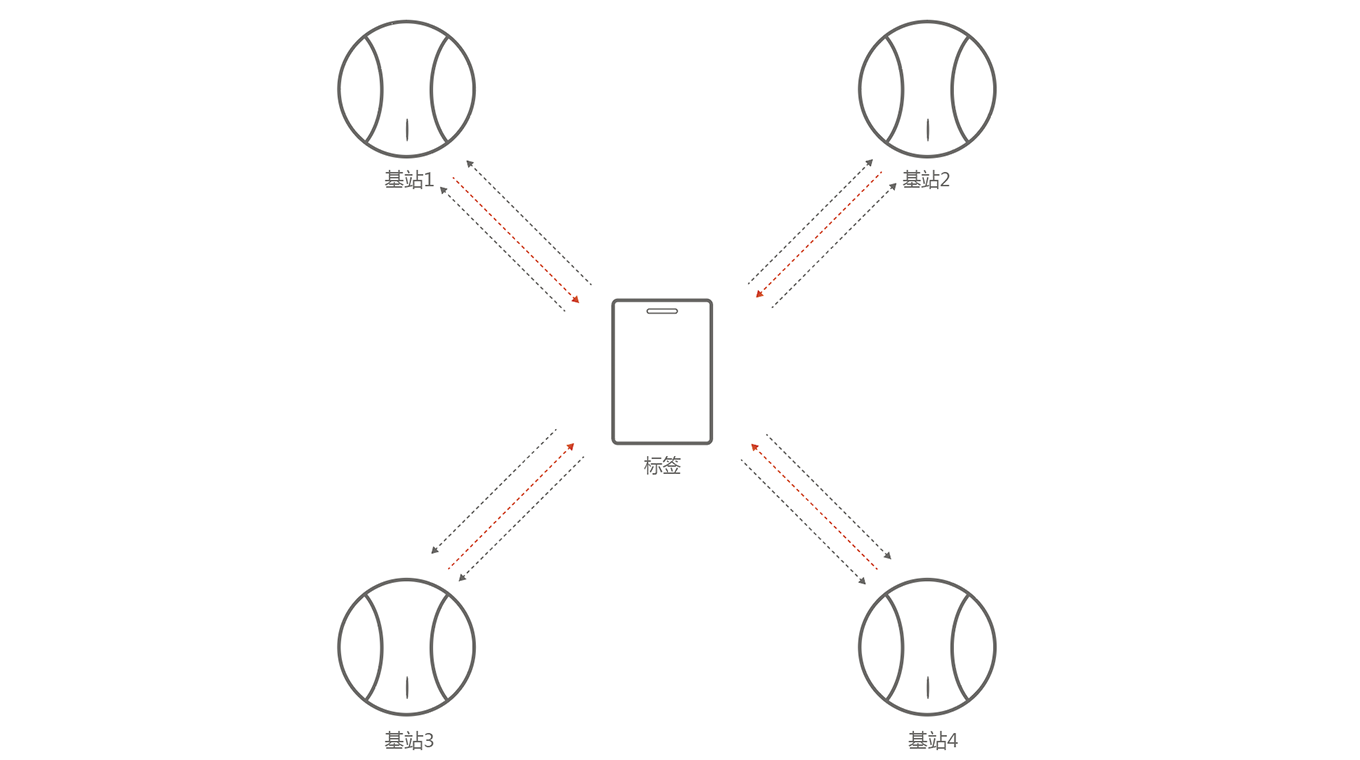 標(biāo)簽和各個基站無線信號的交互如下圖所示: