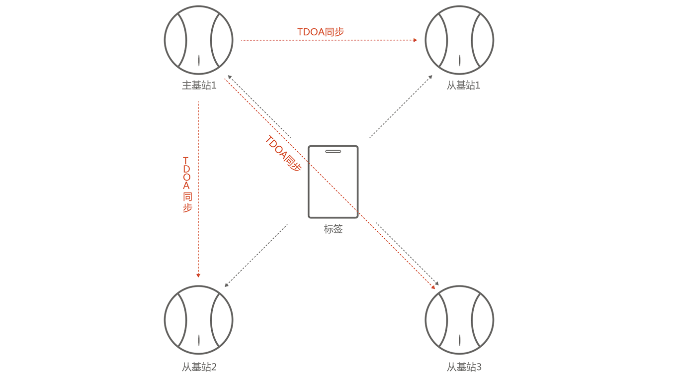 到達(dá)時間差(TDoA)技術(shù),以三角形或者四邊形為最小單位,同步方式可以做到主基站同步從基站,而且主基站也可以同步其他主基站,這樣只需要注意基站在現(xiàn)場布局形狀,就可以做到無限基站的擴(kuò)展;而且增加的基站不會對其他現(xiàn)有的基站造成任何影響。